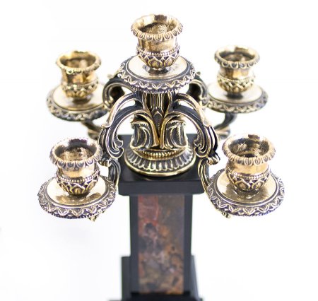 Каминные часы с канделябрами из натурального камня и бронзы, мрамор на 6 свечей "Ангелы"