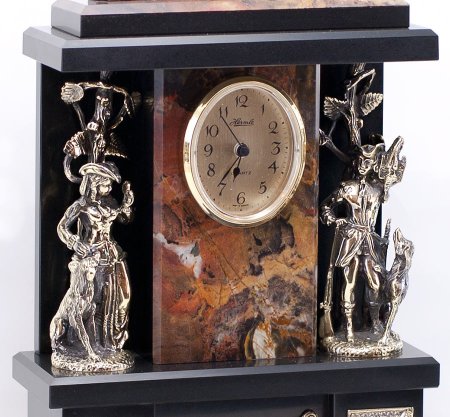 Классические каминные часы из камня с канделябрами "Колибри" яшма 003185