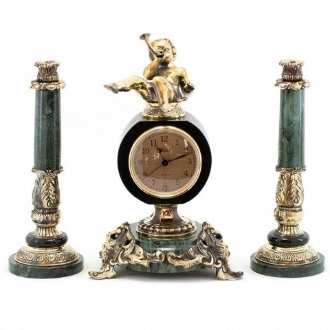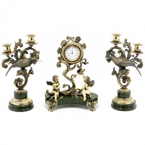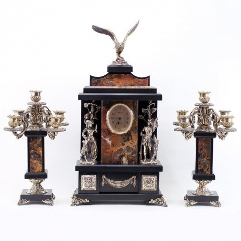 В интернет-магазине можно купить каминные часы с канделябрами, выдержанные в одном стиле. Расставив элементы комплекта по комнате, можно подчеркнуть атмосферу старины.