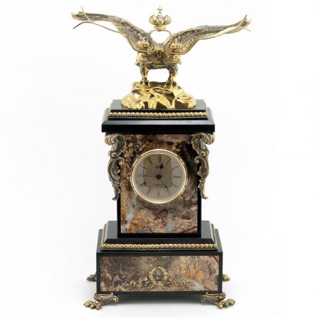 Классические часы из камня в гостиную, для камина "Двуглавый орел" яшма 005012