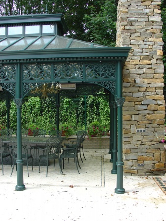 Летняя кованая беседка со стеклянной крышей . Для дачи , сада