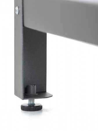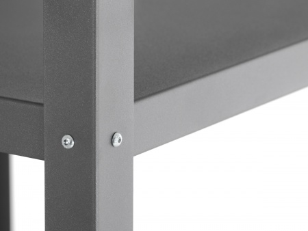 Стеллаж обладает удобной полкой размером 53×53 см, что позволяет разместить на ней разнообразные предметы, начиная от кастрюль и посуды для приготовления пищи и заканчивая приправами и кухонными принадлежностями. Регулируемые по высоте ножки обеспечивают надёжную устойчивость конструкции на любых типах поверхностей, позволяя эффективно адаптировать стеллаж под особенности вашего участка, даже если пол неровный.