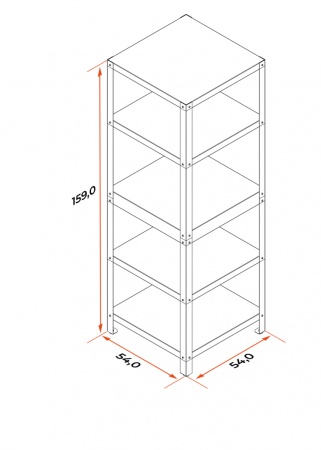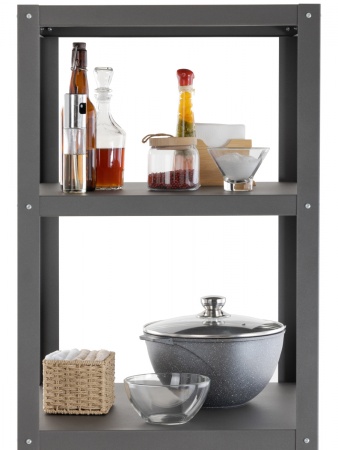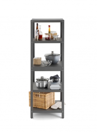 Габариты стеллажа составляют 540 мм в ширину, 540 мм в глубину и 1590 мм в высоту, что делает его достаточно компактным, но при этом вместительным для хранения необходимого на уличной кухне.