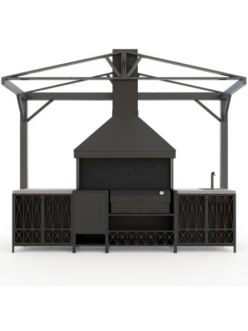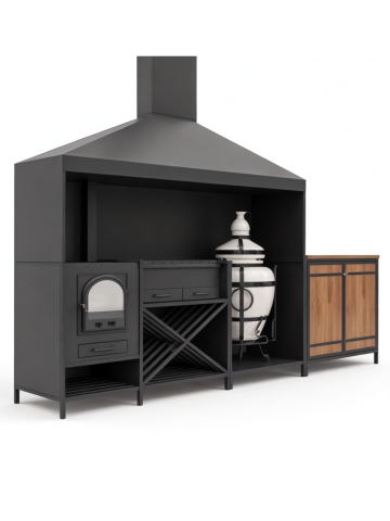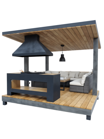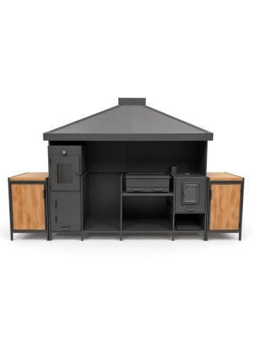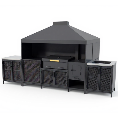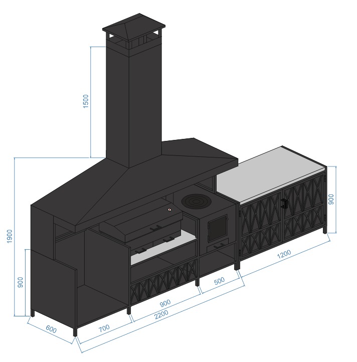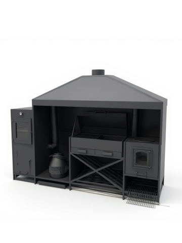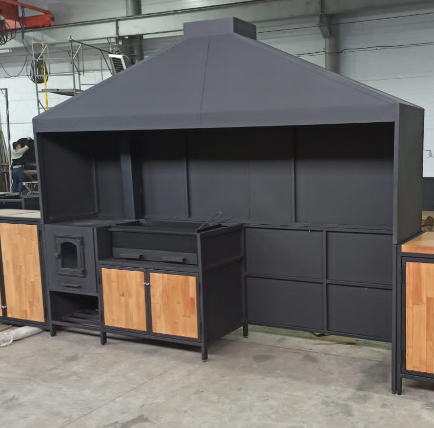 Мангальная зона из металла может стоять на улице и дома. Но для улицы нужен обязательно навес или беседка, если они у уже у вас есть, то сообщите менеджеру для них и рассчитаем. А если нет, может сделать ее тоже. А для дома важна хорошая вытяжная система, чтобы готовить можно было круглы год не открывая настежь окна.