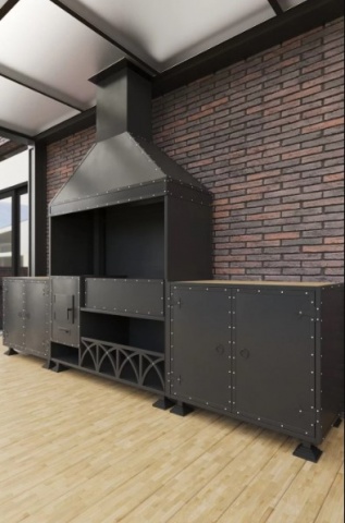 Модульная мангальная зона лофт из металла с коптильней(мангальный комплекс 41)