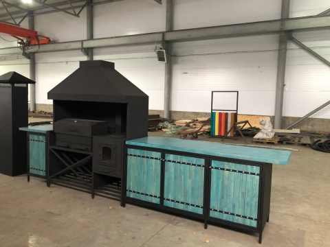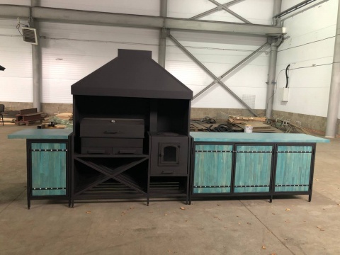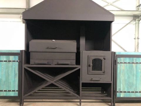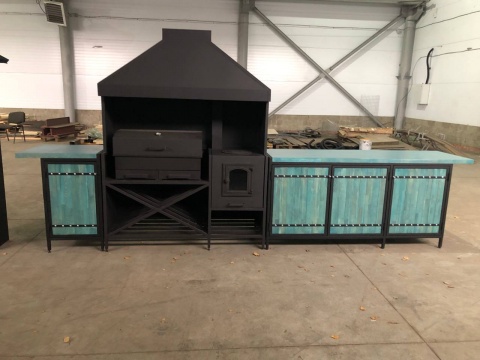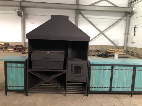 Простая современная модель рассчитана инженером конструктором, удобна для готовки и прослужит вам долгие годы. Мангальная зона лофт для дома и дачи из металла (мангальный комплекс лофт 24) имеет заводское качество, есть собственные цеха и инженер конструктор, и можем спроектировать дизайн под вас и реализовать. Фотографии есть еще в другом цвете и комплектации. Для расчета вашей конструкции нужно уточнит размер, материал фасадов, мойки, наполнение полок и т.д. Позвоните нам или напишите Ватсап.
