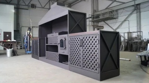 Мангальный комплекс сделан из качественной стали, окрашен импортной термокраской, которая выдерживает температуру 100С.