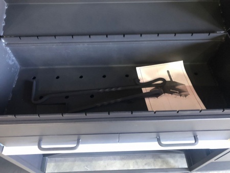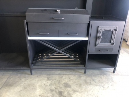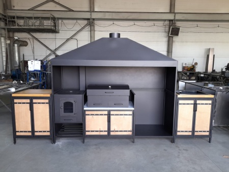 Отделка: Натуральное дерево с защитным покрытием, металлические элементы окрашены порошковой краской. Продуманная конструкция и функциональные элементы делают процесс приготовления пищи на мангале максимально комфортным.