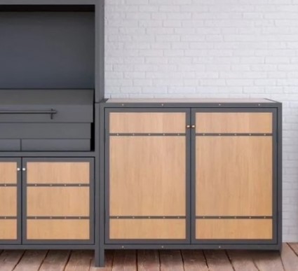 Уличная модульная летняя кухня с мангальной зоной  лофт, облицовка дерево