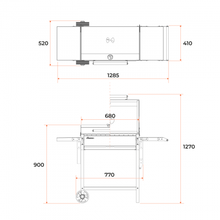 Функциональный дровяной гриль-мангал МАН 205 из толстой стали со складными полками и крышкой барбекю. Мангал имеет 2 складные полки, которые помогают при приготовлении пищи, если они не нужны, их можно сложить. Крышка барбекю оборудована термометром и заслонкой для регулировки притока воздуха, а в основании топки устроен выдвижной зольник. На крышке термоизолирования алюминиевая ручка, которая предотвращает ожоги.