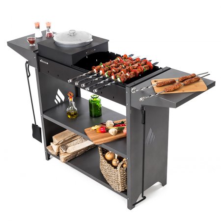 Вместительный гриль-мангал из металла PROFESSIONAL STANDART подойдет для большой компании. Толстая сталь и выверенная конструкция предотвращают температурные деформации топки. Топка сделана толщиной 3 мм. С боков у топки 2 полки, на которых можно разделывать продукты, поставить соуса, специи. Сразу под боковыми полками находятся крепления для печных инструментов.