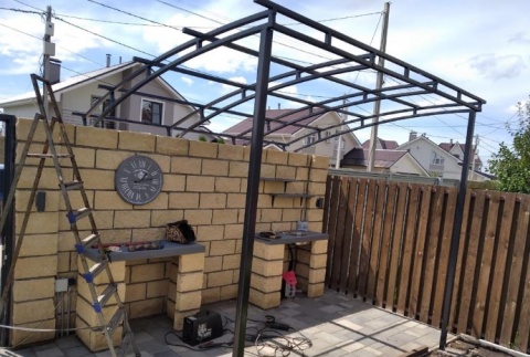 Навес для мангала из металла с металлической крышей для дачи, частного дома(для небольшой мангальной зоны)
