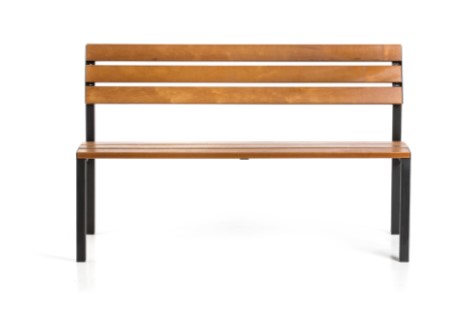 Эта уличная скамейка со спинкой без подлокотников подойдет для дачи, для парковых или садовых пространств. Выполнена из стали и металла. Металл сверху покрыт порошковой краской отличного качества. Деревянное сиденье обработано антисептиком и сверху покрыто яхтным лаком.