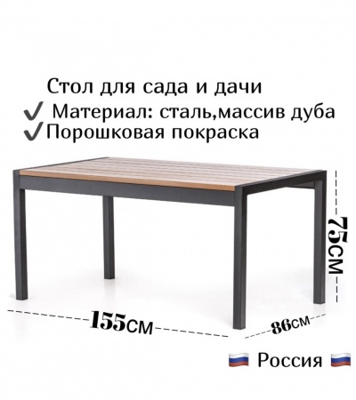 Стол уличный всепогодный для дачи, беседки, мангальной зоны лофт Garden G75 из дерева и металла