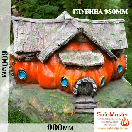 Декоративная крышка люка, септика, канализационного колодца Домик из тыквы. Выполнена из прочного и стойкого к атмосферным воздействиям материала- стеклоплатика, такой пластик экологически чистый и делается из стекловолокна и смолы. Крышка для люка устанавливается поверх стандартной крышки канализационного люка и септика.