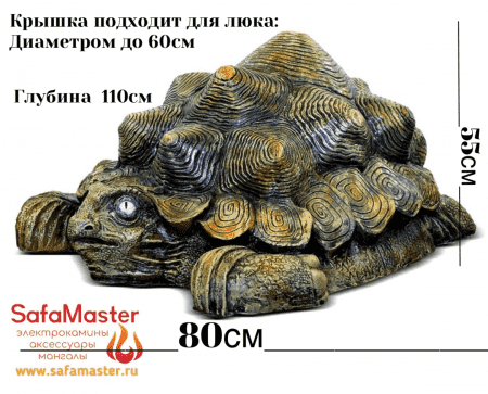 Декоративная крышка люка Черепаха будет играть немаловажную роль на Вашем садовом участке. Она поможет Вам избавиться от некрасивых технических объектов, которые вынуждены присутствовать в пейзаже сада и выполнять свою роль. Такими обеъктами могут быть крышки люка или септика и др. Декоративная крышка Черепаха в композиции с другими фигурами животных из стеклопластика способны оживить садовую атмосферу и стать достопримичательностью Вашего дачного участка.