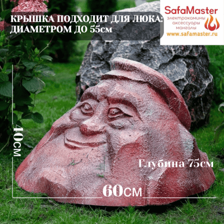 Декоративная крышка на люк, для септика и колодца, Камень в кепке - замечательный предмет для скрытия некрасивых мест на садовом участке: люков канализации, септиков, ям. Сделана из стеклопластика - ударопрочного, влагостойкого материала, который максимально точно передает текстуру изделия, что позволяет модели выглядеть реалистично и естественно.