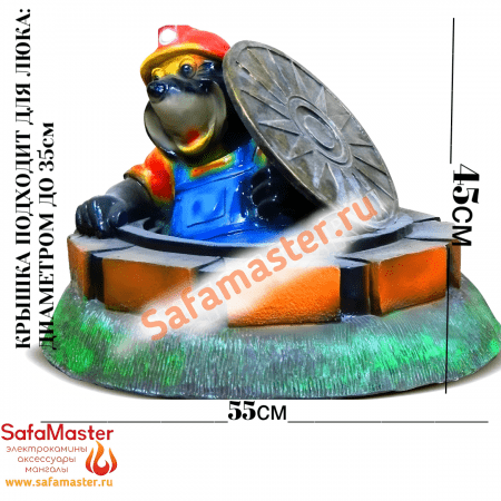 Декоративная крышка люка в образе крота-сантехника призвана скрыть мелкие недостатки Вашего ухоженного сада, например небольшие люки технических ям, септиков, колодцев.