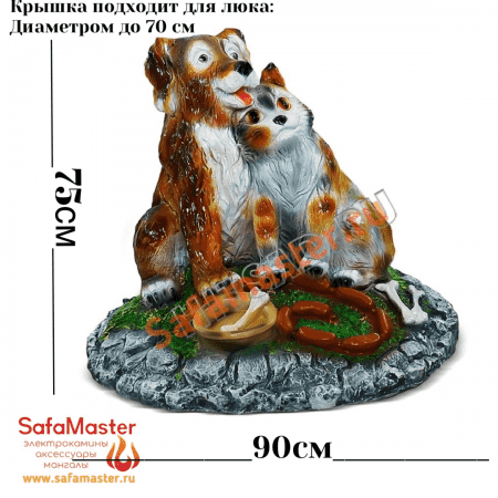 Крышка люка Собака с кошкой изготовлена из стеклопластика - материал повышенной ударопрочности.