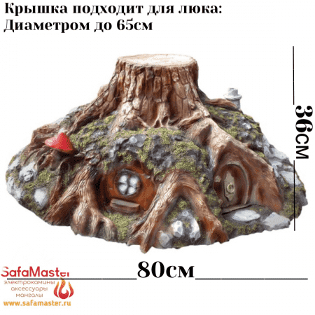 Изготовлена из стеклопластика. Крышка декорирует стандартные бетонные крышки для укрытия люков, септиков и других любых неприглядных мест на дачном участке. Служит для маскировки канализационных крышек, крышек септика. Крышка полая внутри, имеет большой размер и способна прикрыть люк полностью. Легкий вес позволяет перемещать крышку в любое место садового участка.