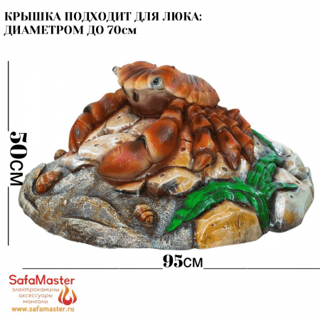 Большой реалистичный краб, отдыхающий на камушке. Милая фигурка понравится всем. И отлично справится с задачей декорирования люков септиков и колодцев. Веселый и сказочный вид способен порадовать как детей так и взрослых. Крабик хорошо будет смотреться рядом с искусственным прудиком или там, где есть песок.