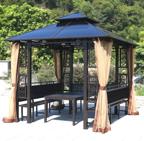 Беседки из металла являются прочными и долговечными конструкциями, которые могут использоваться как для организации открытого пространства, так и как защитная оболочка над определенной территорией. Одной из главных преимуществ таких конструкций является их устойчивость к различным погодным условиям, прочность и долговечность Они могут выдерживать сильные ветры, снегопады и дожди без повреждений и потери своей функциональности. Благодаря использованию высококачественных материалов, подходящих для применения на открытом воздухе, металлические навесы и беседки обеспечивают надежную защиту от погодных условий. Они могут быть выполнены в различных стилях и формах, чтобы соответствовать архитектуре и дизайну окружающей территории. Металлические материалы позволяют создавать различные красивые и функциональные формы, гармонично вписывающиеся в окружающую среду.
