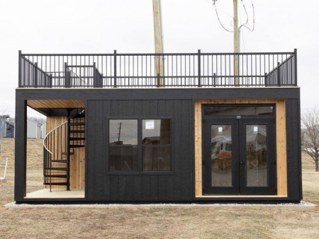 Фасад в стиле «лофт» — чёрный металл + натуральное дерево