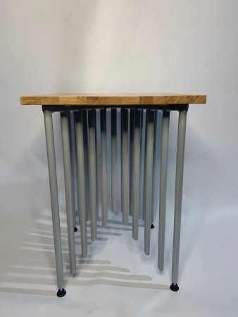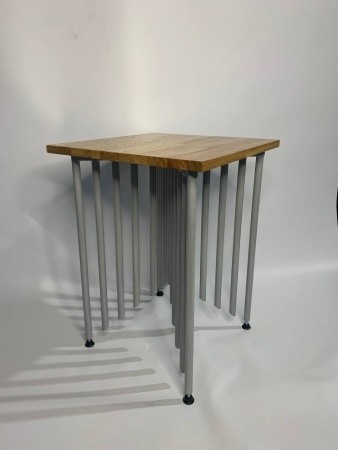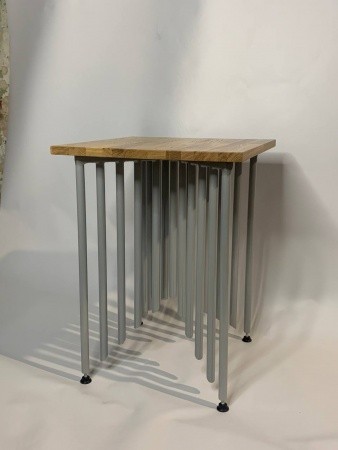 Оригинальный журнальный столик лофт СТ6 в виде органа. Основание: сталь, столешница: массив дуба.
