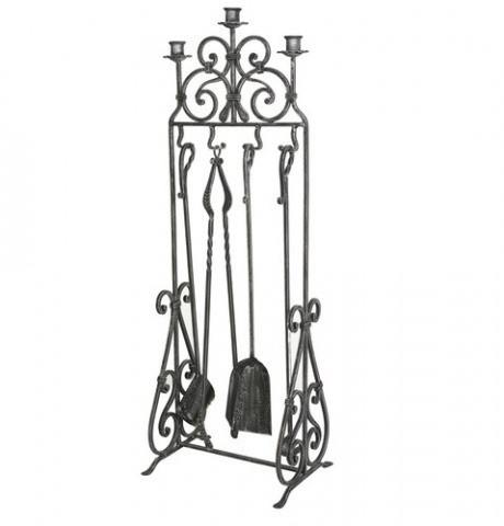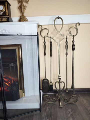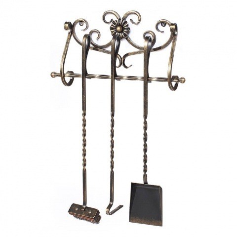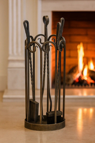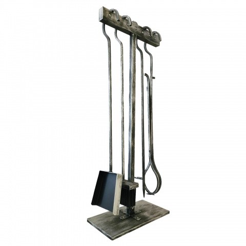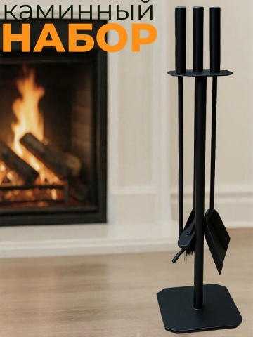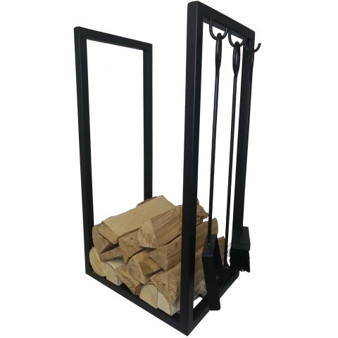 Дровница стеллаж для для камина с каминным набором из металла для дров и щепок SafaMaster "Лофт" D780BK