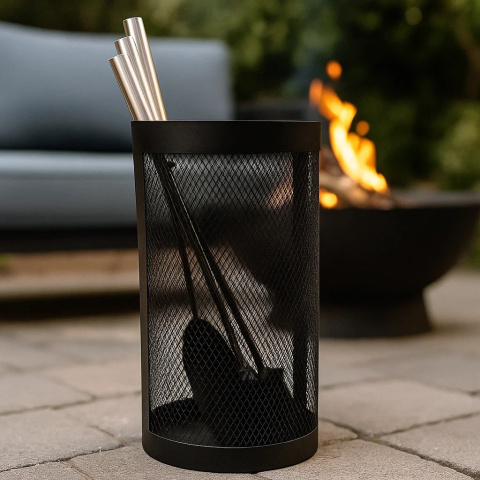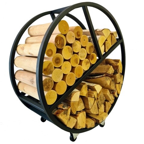 Дровница для камина/бани из металла круглая лофт на колесах «SafaMaster D519BK» с закрытым дном