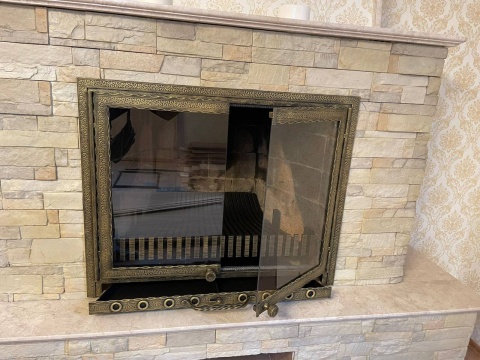 Дверца для печи/камина с термостеклом и создаст теплую атмосферу. Огонь и дрова видно через нее хорошо. Делаем по вашим размерам под заказ. Больше похожа на настоящее произведение искусства.