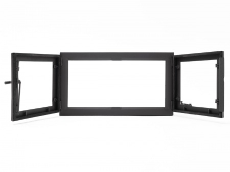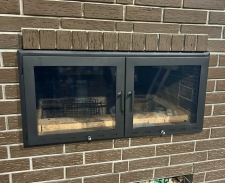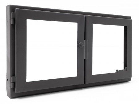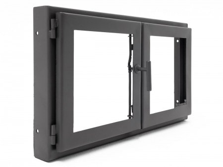 Двустворчатая каминная дверца 700х450 мм под размеры проема 710х460 мм, каминные дверцы данной модели бюджетное и стильное решение для больших проемов от 600х400 мм до 1300х900 мм., позволяет исключить попадание продуктов горения в помещение и создать уютную атмосферу, идеально подойдет для комплексов барбекю, открывается на 180 градусов, створки удобно снимаются с петель и при открывании имеет просторный проем без перемычки по центру.